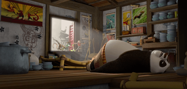 In Kung Fu Panda, Jack Black’s character Po is a fat panda with no skill in martial arts working a dead end job at his father’s noodle shop.